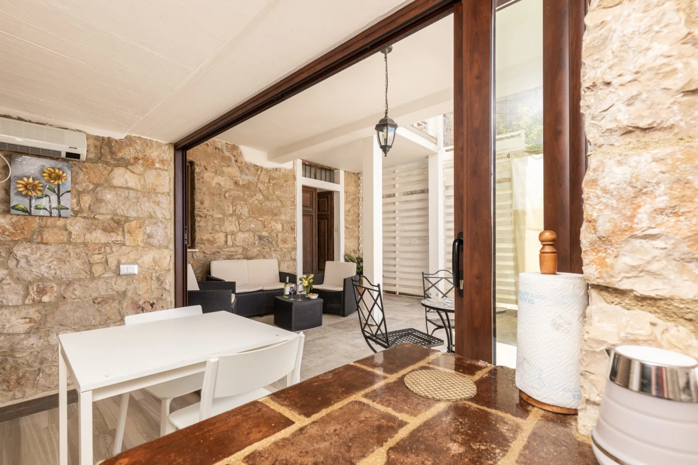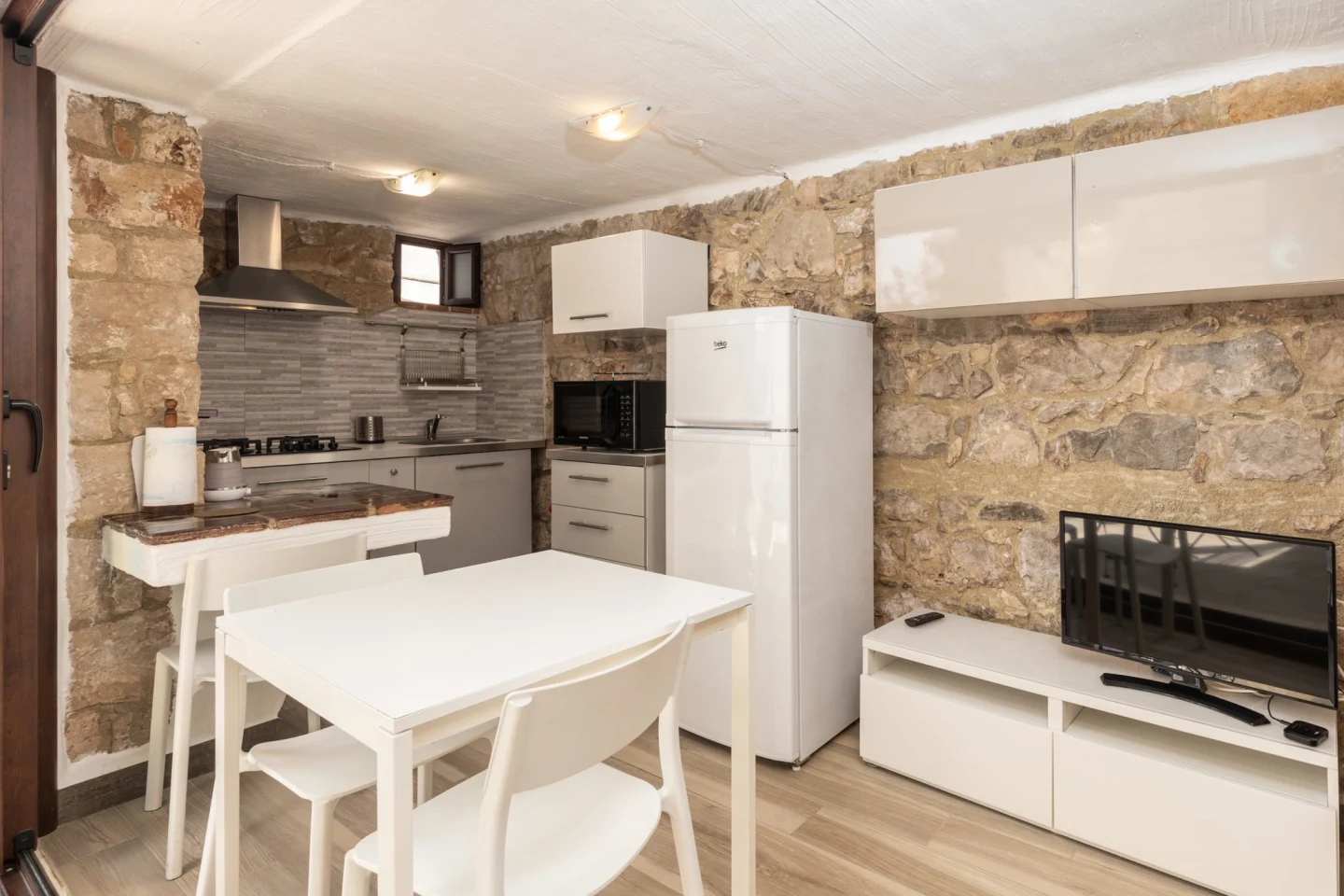 Una casa in pietra, costruita nei primi anni del Novecento completamente ristrutturata. L’alloggio si trova al piano terra, indipendente dal resto della struttura.